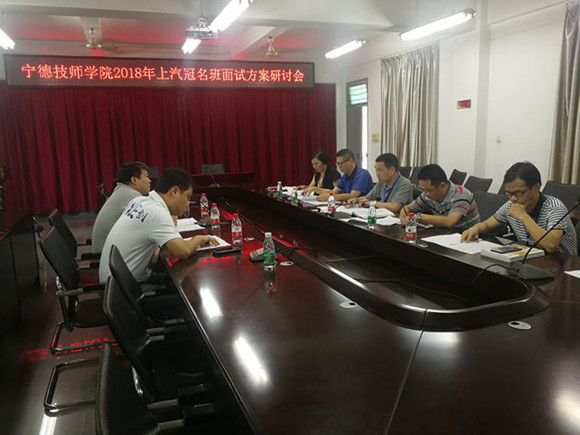 近日,宁德技师学院召开2018年上汽冠名班面试方案研讨会,该院阙少波院长主持会议。会上,上汽人力资源部相关人员就活动方案发表了自己的意见和建议,并就其草拟的委培协议书向该院领导征求意见。这次研讨会的气氛热烈,双方务实高效,形成的面试初步方案和委培协议为7月20日的面试和职教开放周活动提供了保障。